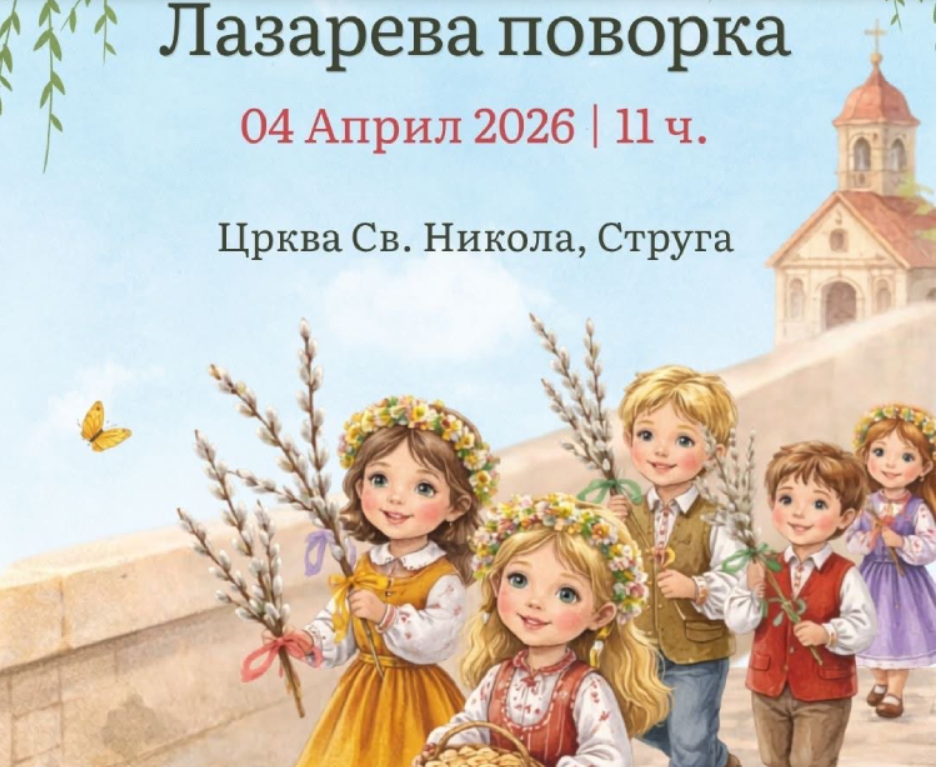 По повод утрешниот верски празник Лазарева сабота, најавена е Лазарева поворка и во Струга. Се покануваат сите верници кои сакаат да бидат дел од овој верски настан, да земат учество во поворката која ќе започне во 11 часот. Собирното место на поворката е од кај црквата Св. Никола, во Паркот на поезијата.